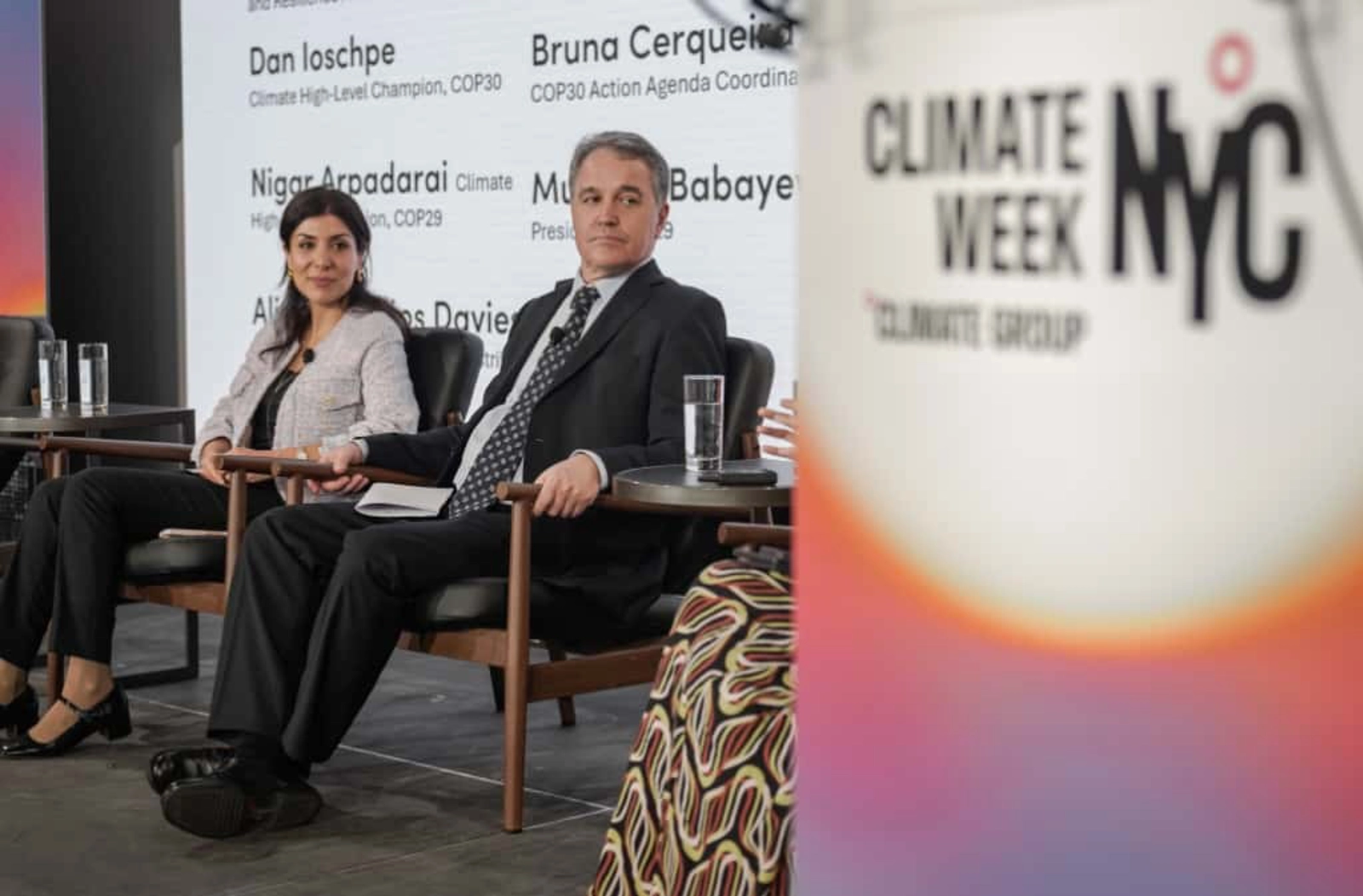 Image: Climate Champions Nigar Arpadarai and Dan Ioschpe at the opening of Climate Week 2.