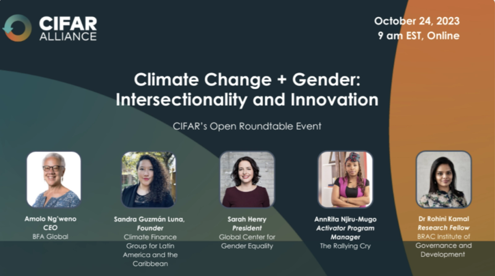 C IFAR ALLIANCE event ClimateChange+Gender: Intersectionality and Innovation